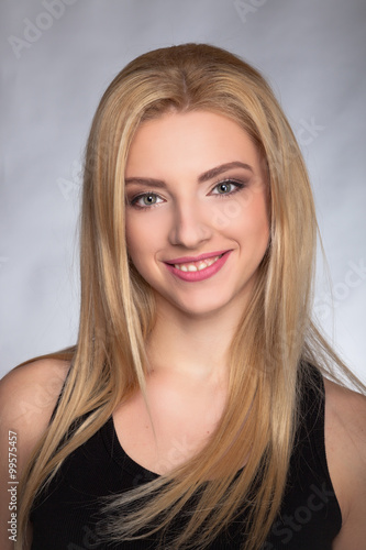 Portrait of a Beautiful Blonde Woman Model black background studio - Stock Image