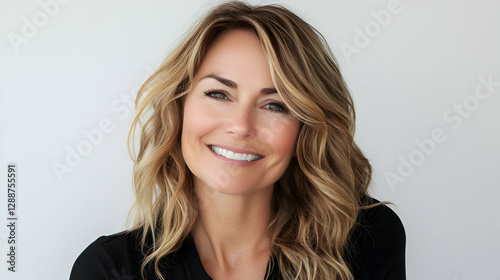 Portrait of a beautiful middle-aged woman with blonde hair and a warm smile