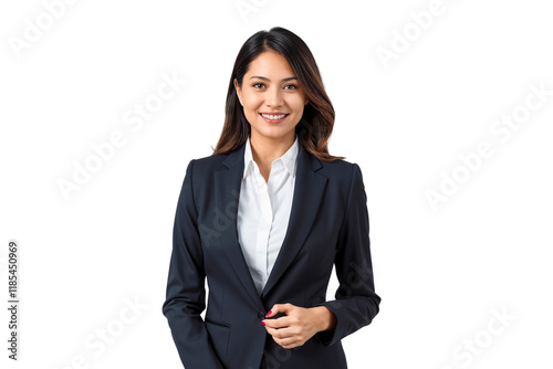 Portrait of a beautiful, smiling businesswoman in suit, isolated on transparent background