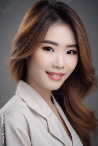 Portrait of a beautiful young asian female doctor smiling. Illustration. Generative AI