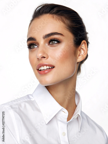 Portrait of a beautiful, young businesswoman in a crisp white shirt, isolated on white background