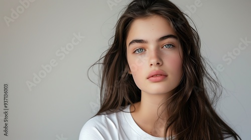 Portrait of a beautiful young girl in a white T-shirt