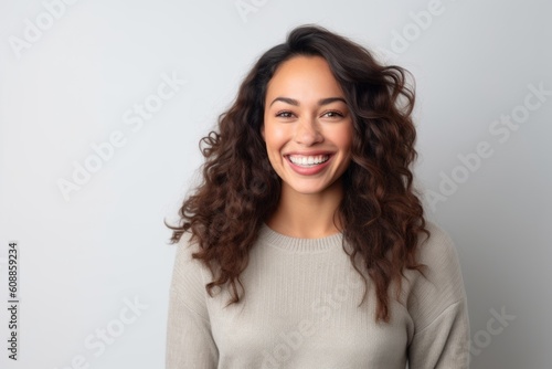 Portrait of a beautiful young woman smiling and looking at camera.
