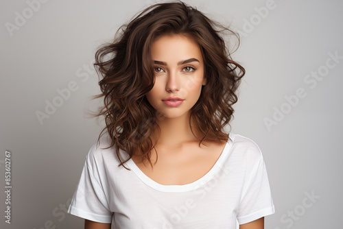 Portrait of a beautiful young woman smiling and looking at camera isolated on a white background