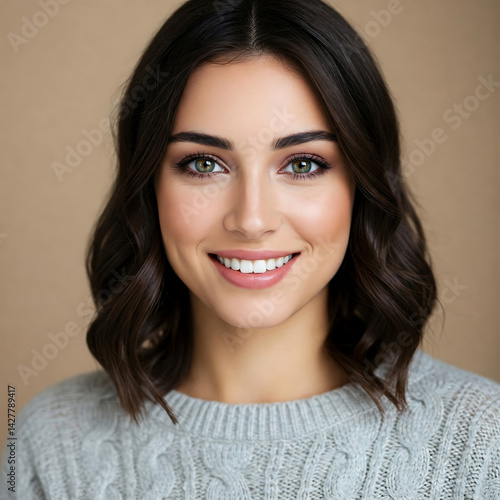 Portrait of a Beautiful Young Woman with a Radiant Smile and Healthy Skin