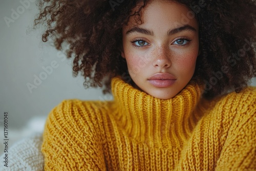 Portrait of a confident black woman in yellow ribbed sweater smiling with arms crossed