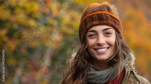 Portrait of a content woman in her 30s with autumn colors