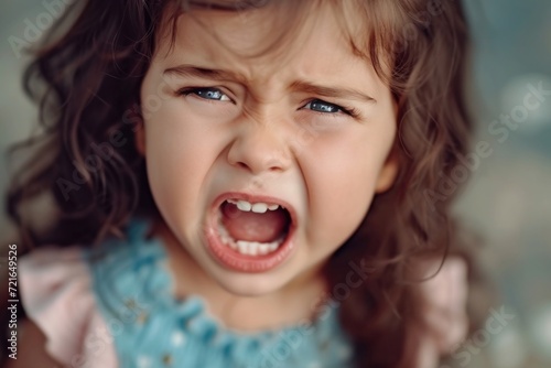 portrait of a crying and shouting emotional child, The intense facial expression of the child crying out in discomfort is both vivid and raw, capturing a genuine moment of childhood distress..