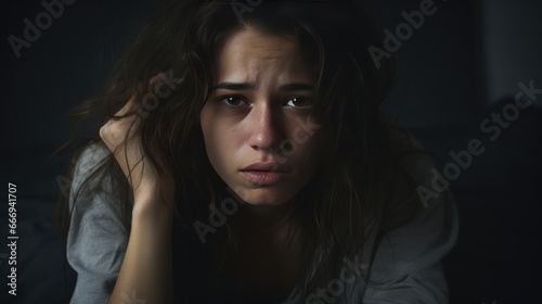 Portrait of a depressed woman, tired and sad. Mental disorder.