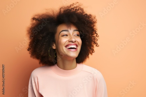 Portrait of a happy afro-american woman in her 20s smiling at the camera isolated on pastel or soft colors background