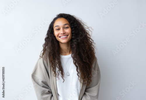 Portrait of a pretty young woman on a white background