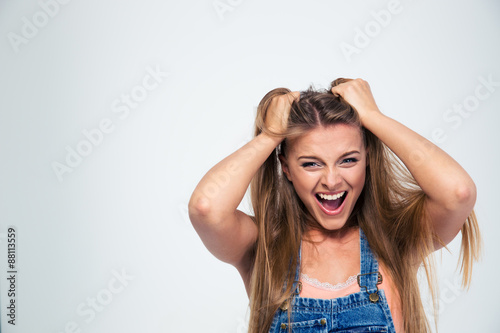 Portrait of a pretty young woman shouting