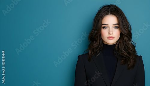 Portrait of a professional woman, headshot, turquoise background. Can be used for business purposes