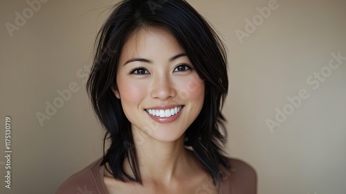 Portrait of a smiling Asian woman with dark hair