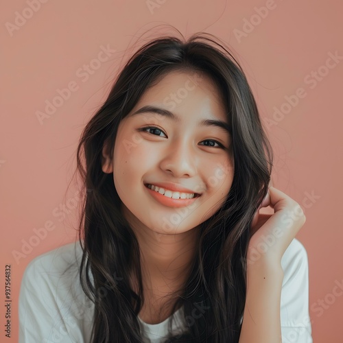 Portrait of a Smiling Asian Woman with Long Black Hair