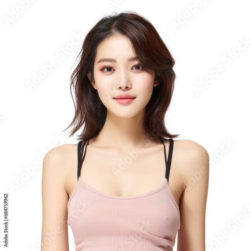 Portrait of a smiling Asian young woman isolated on white transparent, PNG. Japanese, Chinese girl.