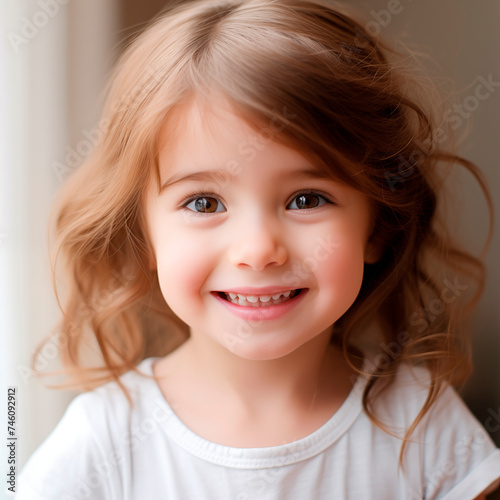 Portrait of a smiling cute little girl with beautiful white healthy teeth. Dental care. Dentistry concept.