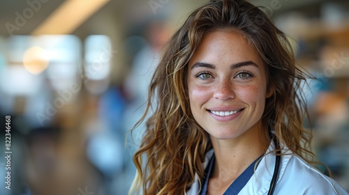 portrait of a smiling female doctor with stethoscope in a hospital setting.illustration
