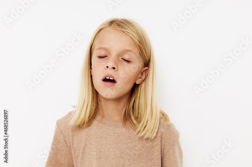 Portrait of a smiling little cutie blank space for logo design isolated background