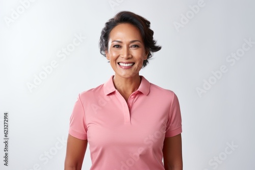 Portrait of a smiling middle-aged businesswoman standing against white background