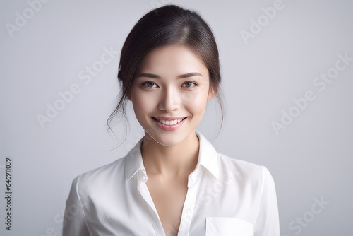 portrait of a smiling woman in white shirt