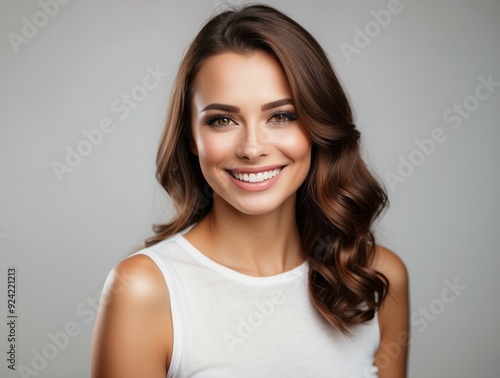 Portrait of a Smiling Woman with Long Brown Hair