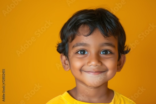 Portrait of a Smiling Young Indian Boy on Yellow Background. Generative AI.