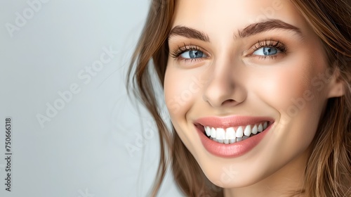 Portrait of a smiling young woman, close up. radiant beauty with flawless skin. perfect for wellness and cosmetics. AI