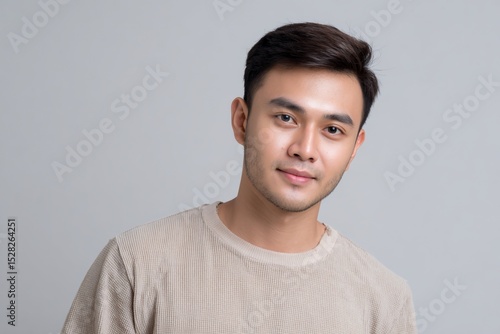 Portrait of a Young Asian Man with Short Brown Hair