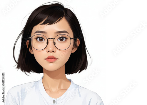 Portrait of a young Asian teenage girl with glasses and a bob