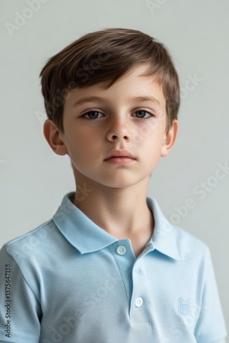 Portrait of a Young Boy in a Light Blue Polo Shirt