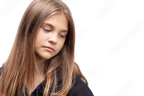 Portrait of a Young Girl Thinking / Sad