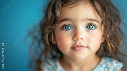 Portrait of a young girl with blue eyes looking up.