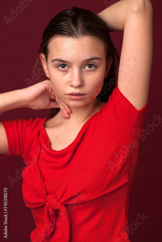 Portrait of a young teen girl without makeup