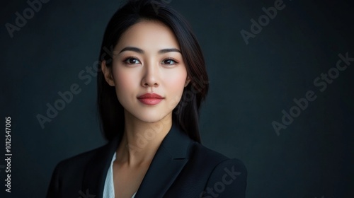 Portrait of a Young Woman in a Black Blazer Against a Dark Background