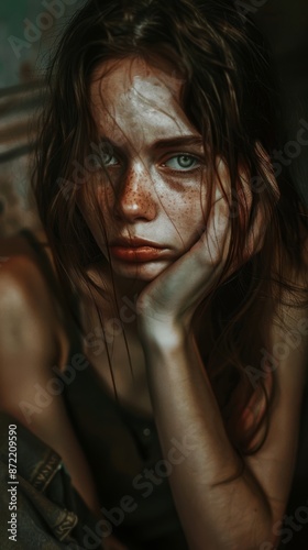 Portrait of a Young Woman Reflecting Deep Sadness and Emotional Struggle