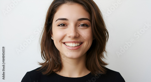 Portrait of a young woman with a beaming smile expressing positive emotion