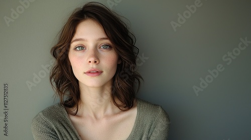Portrait of a Young Woman with Brown Hair and Green Eyes