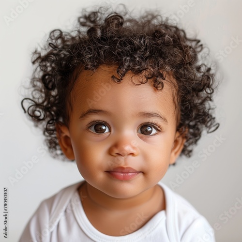 Portrait of an American Baby Boy of Mixed Race with Curly Brown Hair and Sparkling Eyes