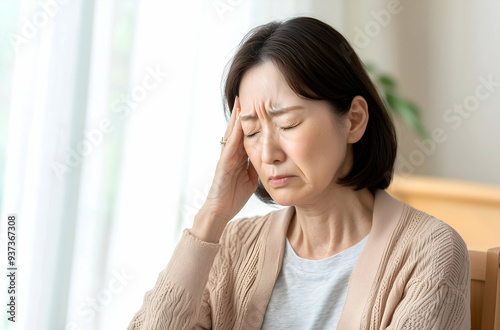 Portrait of an Elderly Woman Experiencing Headache or Stress at Home