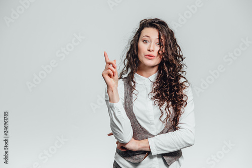 Portrait of attractive business woman on white background. With plenty of copy space. With a beautiful curly hair