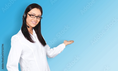 Portrait of attractive young business woman with headset