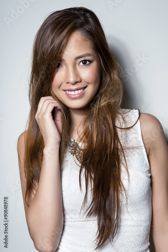 portrait of beautiful young asian woman with clear, flawless skin and perfect make-up