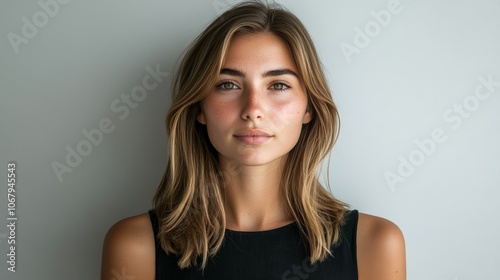 Portrait of Beautiful Young Woman with Blonde Hair and Brown Eyes
