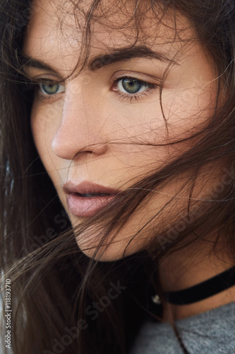 Portrait of beautiful young woman with flying hairs
