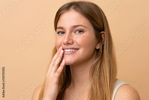 Portrait of blond pretty woman over isotaed background
