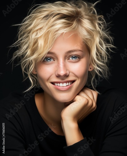 Portrait of caucasian girl, wearing a casual clothing and smiling on studio color background