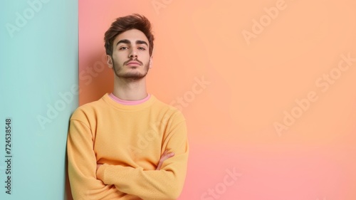 Portrait of confident cool entrepreneur guy cross hands look feel positive cheerful