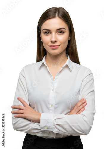 Portrait Of Confident Young Business Woman In White Shirt With Arms Crossed