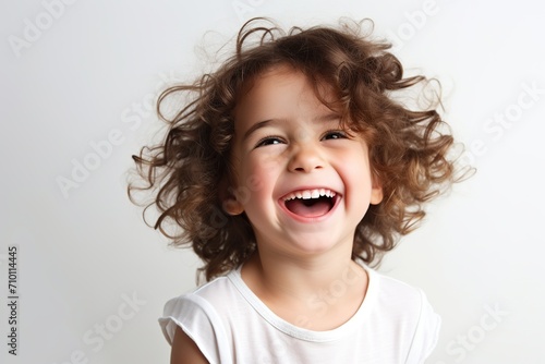 Portrait of cute child on white background